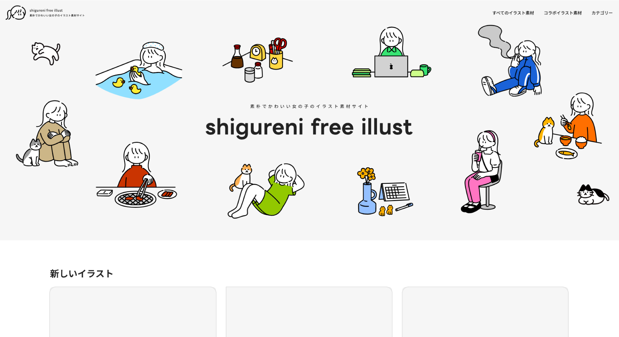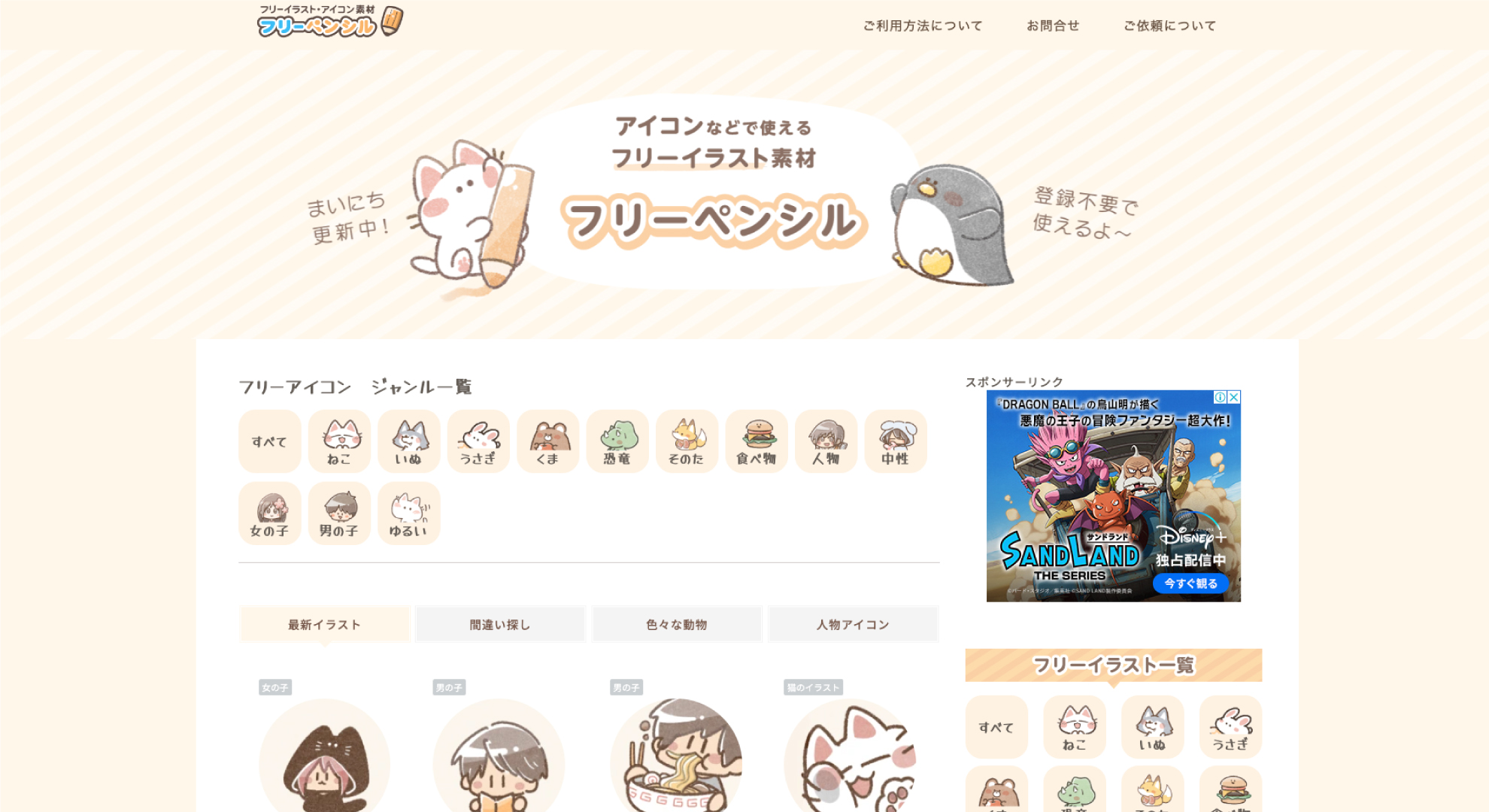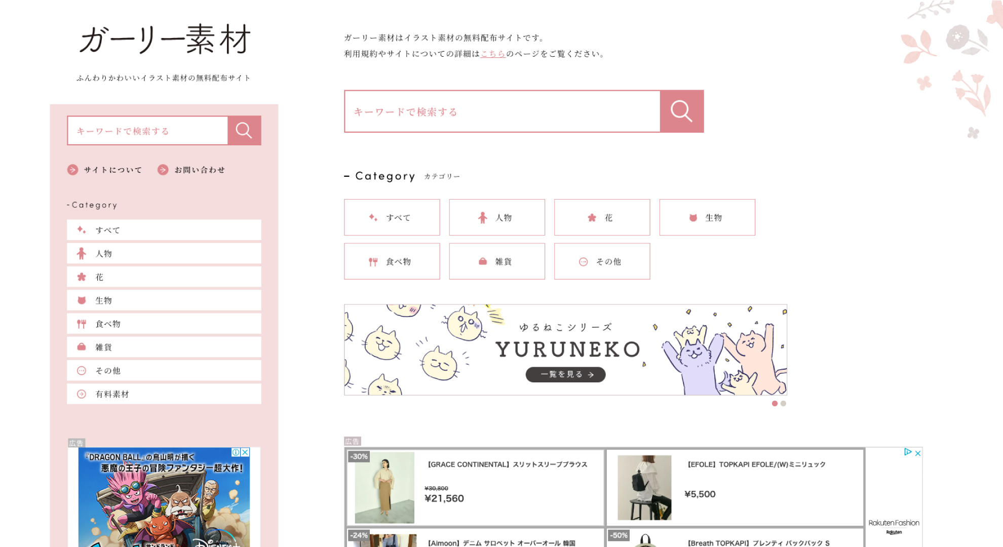 可愛い色使いのイラストが多いサイトです。配信者の方もサムネイルとして使えそうな画像がたくさんあります。