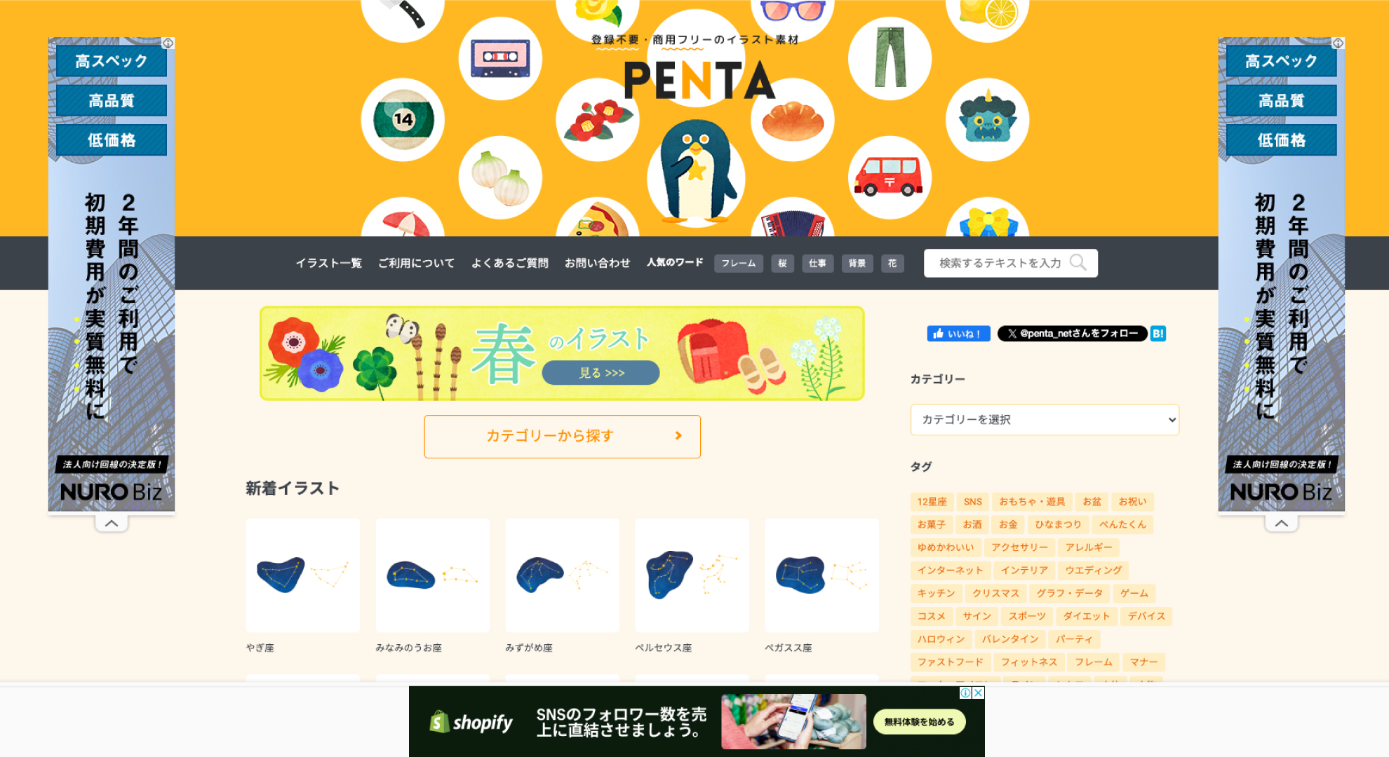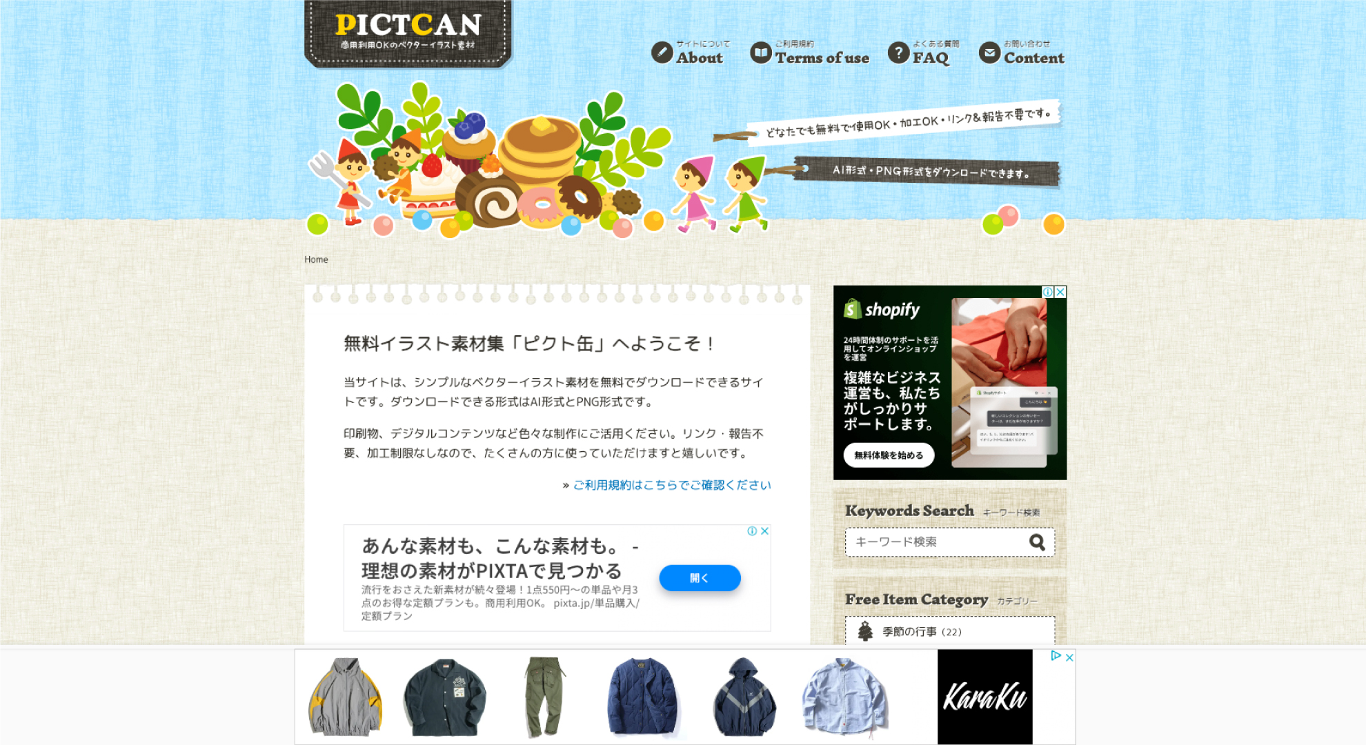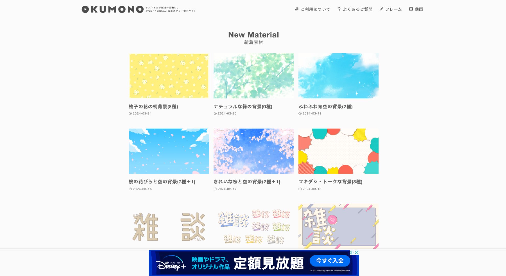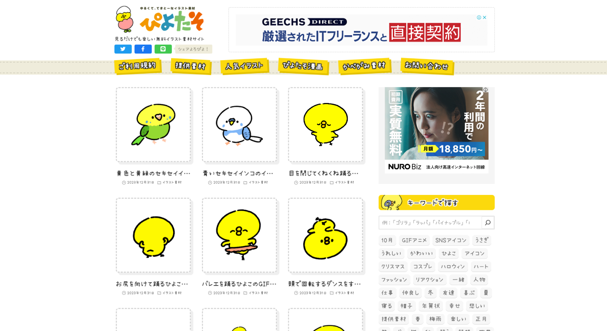 可愛い色使いのイラストが多いサイトです。配信者の方もサムネイルとして使えそうな画像がたくさんあります。