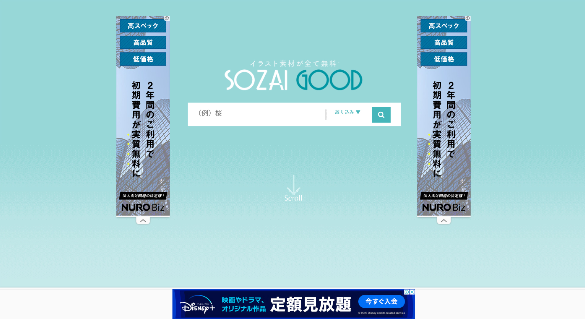 [jin-button-flat visual=”” hover=”down” radius=”50px” color=”#54dcef” url=”https://sozai-good.com/#google_vignette” target=”_blank” rel=”noopener noreferrer”]SOZAIGOODサイトはこちら[/jin-button-flat]
