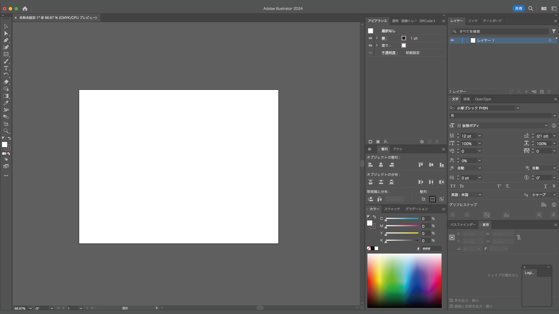 また通常時はアートボード以外の背景部分は上記の画像のようにグレーになっています。