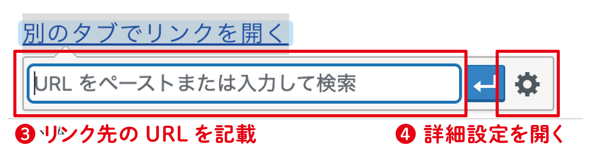 リンクを作成する側は、特に指定しない限り同じ画面が切り替わってリンク先が表示される上記の❶の設定になります。そのため、新しいタブやウインドウでリンク先が開く設定にしたい場合は、追加で設定を行う必要があります。