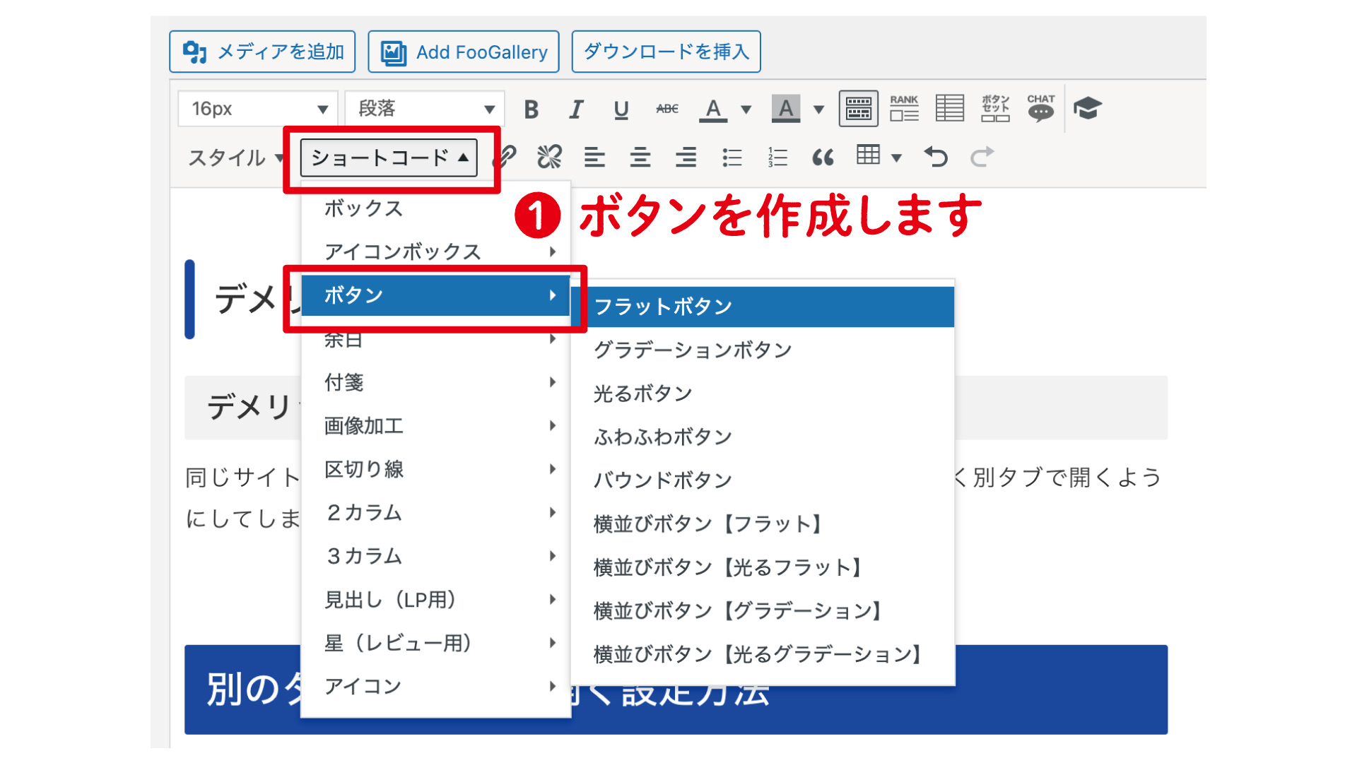 ショートコードからリンクボタンを作成する方法